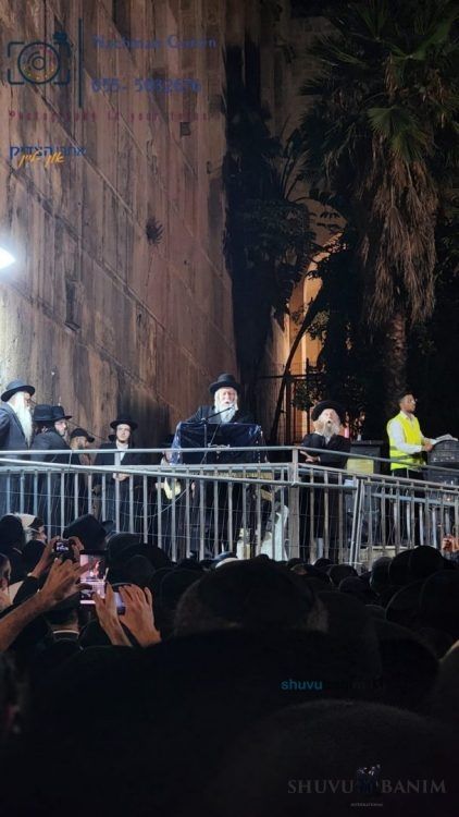 At 10:00 pm, the Rav shlit"a appeared on the platform above the famous "Seventh Step" with a face glowing with holiness. When the Rav arrived at the wall of the Maarat HaMachpelah, he stood for an unusually long time, saying a silent prayer, apparently in order to open the Gates of Tzion and to succeed in coming to the Rosh Hashanah gathering in Uman in 5784.