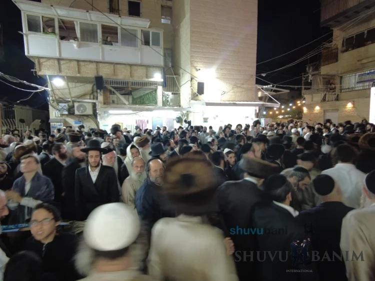Starting at 11:00 PM, throngs of Am Yisrael gathered and came to the courtyard of our Beit Midrash, as the royal orchestra began to play, featuring the well-known singer Râ Akiva Groman, accompanied on the keyboard by the wondrous musician Râ Izik Eisenstadt, and above all, the artist of emotion, stirring hearts with his clarinet â Râ Avraham Balti. And so, hand in hand, shoulder to shoulder, foot after foot lifted, everyone together became one great flame of joyous dancing in honor of the Torah. Around 2:00 AM, it was announced that Moreinu HaRav shlit"a had given instructions to start the hakafot shniyot, and he would also join later on. As per his instruction, those leading the hakafot while holding the holy Torah scrolls recited the verses for opening the Ark and the verses of the first hakafah. Now the hakafot officially began with the singing of "Torat Hashem TemimahâŚ" Once again, circles upon circles, the feeling was that the dancing lifted everyone a handbreadth above the ground. So went the second and third hakafot. Toward the end of the third hakafah, at exactly 3:08 AM, Moreinu HaRav shlit"a emerged in his majestic splendor for the hakafot shniyot from the balcony of his home. He immediately went to his holy place, recited the verses of the fourth hakafah, "Lovesh Tzedakot Aneinu BâYom Korâeinu," and opened with the singing of "Urah Kevodi Urah HaNevel VâChinor Aâirah ShacharâŚ" At this stage, there was no one who did not rise, no one who did not dance, and no circle that did not open. "Bâcha Rabbeinu Nagilah," songs of Uman one after the next with tremendous longing and yearning for the tziun of Rabbeinu. Then, as our Sages said: "Paka igra" â the roof burst open â so it was fulfilled in the hakafot shniyot, in which, as mentioned, multitudes upon multitudes from all communities, circles, and sectors of Am Yisrael participated, with stormy circles of Chasidim alongside working people, Sephardim standing shoulder to shoulder with their Ashkenazi brethren, Chasidim of Toldot Aharon alongside settlers, and Litvaks alongside the elders of our community, all dancing, skipping, and twirling with all their might in honor of the Torah, with Moreinu HaRav shlit"a himself conducting it all, dancing with endless renewal, as if Simchat Torah had just begun, all this after a holiday filled with hours upon hours of continuous dancing and prayers. Moreinu HaRav shlit"a initially danced in a circle with family members and close associates, holding the holy Torah scroll that was written for him and which brought about the release of the hostages (see the separate article on Hoshana Rabbah). After several rounds, he turned to the crowd with joy and delight, clapping his hands and dancing again and again with immense joy, with fiery movements before the entire congregation of Hashem, rejoicing and exulting with great strength and might! One hakafah followed another, as Moreinu HaRav shlit"a did not skip any customary piyut â "Ein Adir KaHashem," "VaYesoiu Lecha LâAvdecha," "HaMelucha VâHaMemshala Tzu VemenâŚ" and more, all with song and joy, in gladness and jubilation! In the sixth hakafah, the important bachur Yosef Arnesti, who is known as a regular musician during visits to the Tomb of Yoseph HaTzaddik, stood at the musiciansâ stand and led the thousands in singing "BâZchut Yosef HaTzaddik ⌠Yimale Mishaloteinu BâMidah Tovah, Yeshua VâRachamim." "Rachmana Idkar Lan Zâchutei DâYosef TzaddikaâŚ" the masses jumping! When the seventh hakafah, the final one, arrived, it seemed that there was no person in the world who could possibly conclude this holy night, these powerful dances, and this tremendous joy. Instead of singing "Seu Shearim Rasheichem," they began singing "Atah Bechartanu MiKol HaAmimâŚ" not ceasing to dance for a moment! One of the most beautiful moments was when Râ Chaim Reicher burst into the singing of "Adir Kevodo," with the entire vast crowd responding with a roar, "Hod VâHadar," and the crowning moment at the end of each section of the piyut, when the singer shouted "Simchat TorahâŚ" and the entire crowd responded, "Yesh! Yesh!" Râ Chaim added several of his own sections, which further elevated the fiery joy of holiness: "Shuvu Banim⌠Yesh! Yesh!" "Moreinu HaRav Yesh! Yesh!" At 4:55 AM, they began singing "Seu Shearim Rasheichem." The sponsor of the seventh hakafah stood beside Moreinu HaRav shlit"a with the new Torah scroll, and here the Rav began the piyutim of the Middle Eastern communities, "AgadelchaâŚ" "Aâufa EshkonaâŚ" again and again with immense vitality and fervor! These uplifting songs, written by the Kabbalists and great Sages of Israel of previous generations, served as the most moving seal for this entire holy night, for the exalted Simchat Torah, and for the writing of good decrees for all of Israel for a good and blessed year with tremendous salvations without end! At exactly 5:10 AM, three hours after the start of the hakafot, Moreinu HaRav shlit"a signaled with his holy hand, recited Kaddish, and began the Shacharit prayer for Isru Chag, starting with Tikkun Chatzot and the morning Zemirot. At the conclusion of the morning Zemirot, he began reciting Korbanot. As is the custom of the Tzaddikim, the foundations of the world, who eagerly awaited to don tefillin with desire and sublime joy after the seven days of the holiday, at the precise time for tallit and tefillin, Moreinu HaRav shlit"a blessed over his tallit and adorned himself with tefillin, with the joy of the mitzvah clearly visible on his face! Although this was a regular weekday Shacharit prayer, with the Rav shlit"a, there is no such thing as regular, especially since we donât merit every day a Shacharit prayer in his holy shadow. Moreover, everyone was still wearing their holiday garments, which still gave a taste of the holiday. Of course, despite all of Simchat Torah and the minimal sleep we merited since the eve of the hilulah of Rabbeinu HaKadosh durin