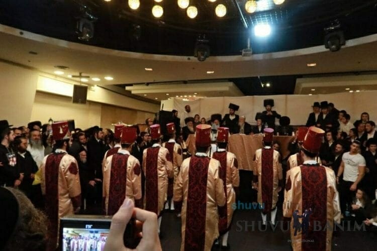 Last week was the wedding celebration of the grandson of our Rebbe Rav Eliezer Berland shlitâa, Avraham the son of Rav Natan Rubenstein, and the grandson of Rav Yehoshua Dov Rubenstein, with the daughter of Rav Nachman Goldshmidt. The wedding was held at the Kinor David events hall in Beit Shemesh.