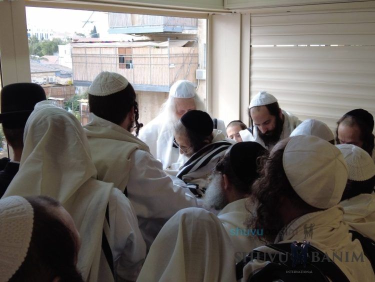 At 5:17 AM, Moreinu HaRav shlit"a entered for the Hoshana Rabbah prayer on the balcony of his home, as hundreds, perhaps close to a thousand people, gathered to pray on this "Day of Judgment" together with Moreinu HaRav shlit"a, standing in the courtyard of our Beit Midrash – the Prayer Hall, all wrapped in white with their tallit and kittel, singing "Or Zarua LaTzaddik" for about 22 minutes before the prayer. Afterward, Moreinu HaRav shlit"a began Shacharit, starting with the recitation of Tikkun Chatzot with the verses customarily said on Shabbat, holidays, and festivals. The morning Zemirot and the Korbanot were said with vitality and fervor. At 5:50, at the time for putting on the tallit, he blessed and donned his tallit. At 6:35, he began reciting "Hodu" – Pesukei D’Zimra, along with the additions for Hoshana Rabbah (the order of prayer similar to Shacharit of Yom Tov), and he extended the singing and melodies, such as "Hoshia Et Amecha" for about 5 minutes and "HaNechmadim MiZahav" for 8 minutes. Parenthetically, it should be noted that it is a great joy to hear Moreinu HaRav shlit"a sing these niggunim through the loudspeaker, as this is the only time of the year when the Rav shlit"a recites Pesukei D’Zimra, said on Shabbat and festivals, through a loudspeaker, his pure voice resonating even far away. At 7:20, he said "Baruch She’amar," and about fifteen minutes later, they reached the end of "Yishtabach." Here, at the instruction of the Rav shlit"a, the prayer leader, R’ Dov Zucker, sang loudly "Berachot VeHodaot LeShimcha HaGadol" in the tune of the High Holy Days, as is customary on Hoshana Rabbah. And, of course, after "Yishtabach," Moreinu HaRav shlit"a recited "Shir HaMa’alot" verse by verse, with the vast congregation responding after him. The Amidah prayer for Shacharit of the Day of the Seal began only at 7:54 – about three hours for Shacharit.